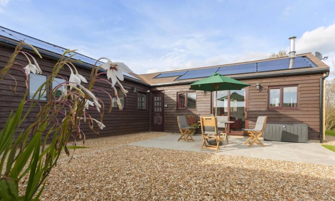 Tastefully and stylishly furnished, this rural barn is an ideal retreat for enjoying this delightful area. As its name suggests, Swallows’ Nest is home to a family of swallows and guests can wake up to their delightful birdsong and playful interaction. Outside there are two patio areas with garden furniture, one at the front and one at the rear of the property, to take advantage of the morning sunrise or evening sun. There is also a covered area with table tennis for guests to enjoy. Inside, the open plan living area has high vaulted ceilings, adding to the natural light from the Velux windows and patio doors, and the stylish design in a black and white theme adds to the spacious ambiance. There is a wood burner as well as a heater/air conditioning unit. Eco friendly, the water for the tank is collected from natural rainwater, and solar power provides additional warmth. Both attractively presented bedrooms have TVs and en-suite facilities for added comfort, and many extras have been provided such as toiletries, binoculars, games, books and toys.