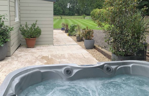 Bedroom 2: 2 x Single (3ft) Beds Ensuite: Cubicle Shower, Heated Towel Rail, Toilet. Gas central heating, electricity, bed linen, towels and Wi-Fi included. Cot on request. Welcome pack. External utility room with washing machine and tumble dryer. Enclosed patio with garden furniture and barbecue. Hot tub for 6 (private). Dog kennel available outside if needed. Private parking for 2 cars. No smoking.. Newly renovated in 2020, this fantastic single storey holiday property is bright and modern and the two en-suite bedrooms will appeal to friends, couples and small family groups. Located in the small and picturesque village of Worlington, which gives easy access to Thetford Forest, Newmarket, Cambridge, Bury St Edmunds and slightly further afield Norwich which is 44 miles away. it’s ideally placed to make the most of your time away in West Suffolk. The Norfolk and Suffolk coasts can also be reached in just over an hour’s drive. There is an open-plan kitchen/dining/living area and contemporary furnishings throughout the property and it is fully equipped with everything needed for your perfect break away. The owner also offers dressing gowns, disposable slippers, toiletries and a generous welcome pack. The garden wraps around the property and has a patio area with outdoor furniture perfect for al-fresco dining. The six seater hot tub with its star gazer canopy is perfect for relaxing in after a day out exploring the sights. There is also a kennel outside for dogs.