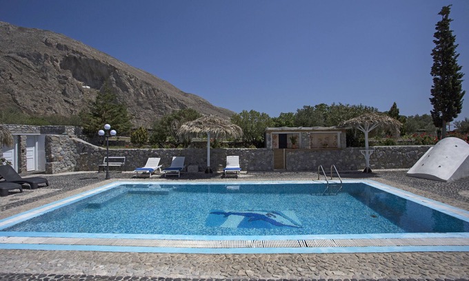 The property is situated in Perissa beach in the southern part of the island. We are just 500m from the biggest beach of the island and just 400m from the restaurants, bars, supermarket, and local bus station. With your free car, you can easily explore the beaches of the island like Red beach, Kamari beach, Vlychada beach, and Monolithos beach plus with a 15min drive, you are in the center of the island, Fira town To the other side of the island Oia you can drive in 35 min. With our office, you can also book daily tours to Volcano and to the hot springs or hire ATVs for fun.\