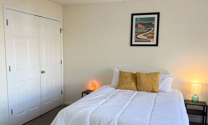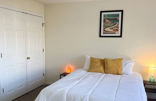 The space has two queen size beds that will comfortably sleep two people. Along with a sleeper sofa. This apartment is located on the second floor with one flight of stairs. Two free parking spaces are available and numbered with easy access. To access the apartment you must get the key from the lockbox.