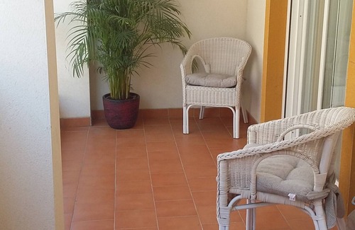 The apartment is on the ground floor of a small block. It's a great base for your stay while visiting family /friends or a few rounds of golf. It has a fully equipped kitchen with everything you need for your stay Spanish/English TV, DVD player. Comfortable lounge area plus dining table and 4 chairs. One double bedroom one twin bedroom all with air conditioning. Bathroom with a walk in shower. There is a private balcony off the lounge with table and chairs. The front door looks out onto a communal patio, where there is a BBQ that can be used, but it must be cleaned after use. There is a rooftop communal pool, but this is only open throughout the summer period.