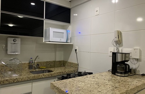Get the ease of the Facility Home concept and the privilege of being in a location surrounded by convenience and convenience. Modern building with porte car, new, elevator and porter 24hs, sauna, swimming pool, gym, pizza oven, playroom, ballroom, gym, barbecue and 01 parking space. 02 Rooms, 1 suite, LED TV 49 "WIFI Internet, complete kitchen with cooktop stove, washing machine, refrigerator, microwave, air conditioning. Full in linens and kitchen utensils