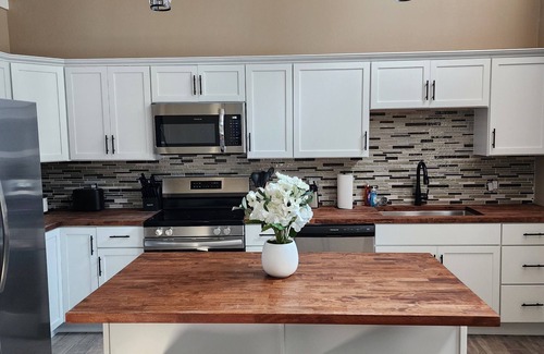 Discover this marvelous 2-bedroom gem in Carterville. This peaceful apartment features 2 full beds, WiFi, AC, iron, washing machine, dryer and heating. The kitchen has a full size refrigerator with ice and water in door, dishwasher and stove. The kitchen has all utensils, pots & pans, plates, silverware, cups, etc. you will need. There is also a small crockpot and coffeemaker with single serve or full pot. With a full bathroom, guests can relax and unwind. This apartment boasts a large loft which is the second bedroom but also has a desk for a working space and lots of extra room. We hope you enjoy what our place and Carterville has to offer.