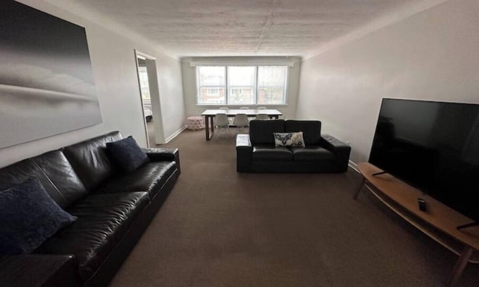 This property offers 2 large bedrooms, one with a queen size bed and the other bedroom with 2 single beds with lots of closet space. 1 large washroom with bath/shower. Very spacious living room / dining room with flat screen TV, free wifi, air conditioning and dining room table that seats 6 comfortably. Large kitchen. Free Parking Included.