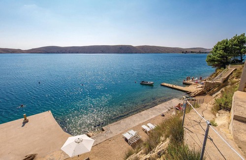 This holiday house with beautiful and comfortably furnished apartments CKP576, CKP578 i CKP579 is located right on the beach. Enjoy the magnificent views of the sea and the beach here. The apartments have two bedrooms and two bathrooms. The courtyard has a shared barbecue and a staircase that leads to the concrete-pebble beach. Explore the hidden bays and magnificent beaches. Do not miss relishing the excellent cuisines here! The island of Pag is famous throughout the world for its delicious cheese, lamb and good wine. The minimum ceiling height in CKP578 and CKP579 is about 120 cm.