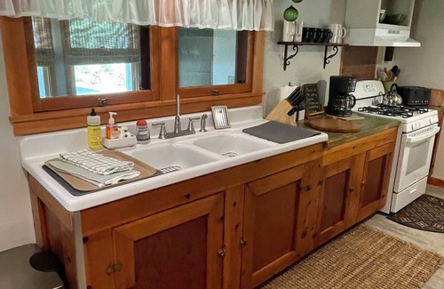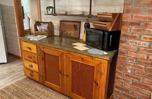 At the end of a busy day, retreat back to this quiet cabin to relax around the fire pit, lounge on the porch and hang together creating those special memories. This place has great outside amenities that include a lovely pavilion for outside dining, a seasonal vegetable and herb garden to help create your meals, outdoor shower and lawn game area, etc.