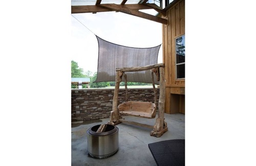 Your stay at this 2 bedroom cabin is enhanced by its thoughtful amenities and features designed for comfort and relaxation. Accommodating up to 4 guests, the cabin includes a cozy half-bath, a covered outdoor hot tub offering breathtaking views, and a full outdoor bathroom with a shower for convenience. Enjoy lazy afternoons on the unique teak wooden swing on the covered patio or whip up delectable meals in the outdoor cooking area equipped with a stainless steel BBQ pit and seating for four. Please note that Saturday nights may feature some noise until 11 pm as weddings are hosted onsite, adding a delightful ambiance to your experience.