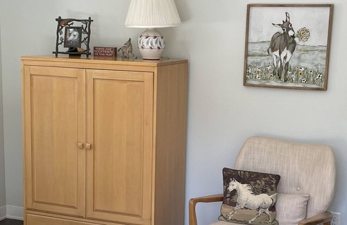 You drive down a country road to a rural retreat surrounded by red cliffs, cactus, and a rambling brick ranch with a “casita”. There is plenty of parking and a private entrance to your guest home. Inside, you’ll enter freshly remodeled accommodations with soft, neutral colors that set-off the ancient Vermillion Cliffs in every window. Breathtaking.