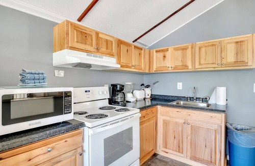 Cottage L (sleeps 8 people) is one of our two-bedroom cottages - with roomy common space with a cathedral ceiling. It is situated on a sunny knoll with a beautiful view of the lake.