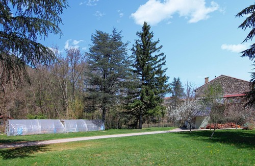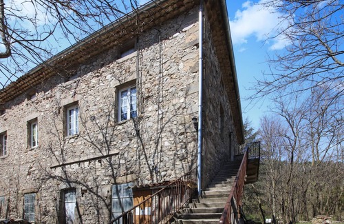 Nestled in a park-like garden, this former silk mill from the 19th century welcomes you at the foot of the Tanargue massif. Make yourself comfortable in the lovingly rustic interior and look forward to convivial meals at the round dining table and cosy reading sessions on the sofa, while the scent of the centuries-old trees wafts through the rooms and the wood-burning stove crackles softly.