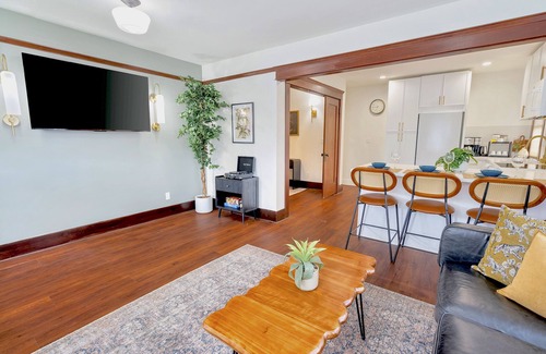 Nestled in a historic neighborhood, our beautifully restored duplex unit offers a cozy retreat with modern amenities. The spacious living area features a living room with windows and natural light. Enjoy views from your King Bedroom window.