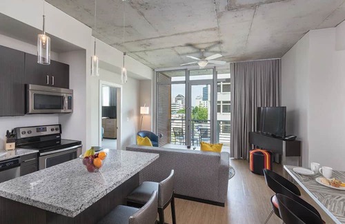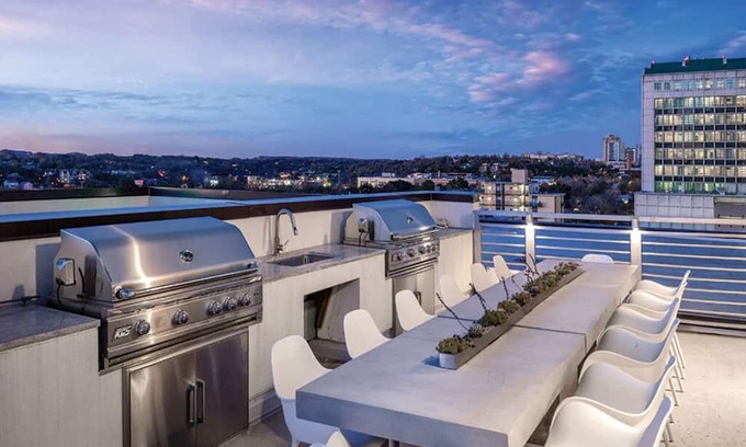 But before you step out to enjoy all that Austin has to offer, take some time to embrace the resort's countless amenities. Relax, cool off and take a dip in the outdoor zero-edge infinity pool and kick back on the rooftop sun deck. Keep up with your workouts at the fitness center, equipped with cardio machines. Guests will enjoy the high-speed Wi-Fi access, a game room and beautiful barbecue areas. Stay in your own personal resort suite right in the heart of Austin.