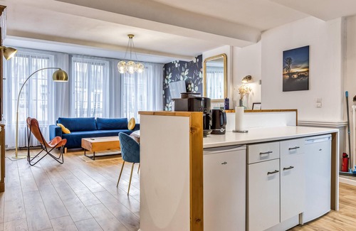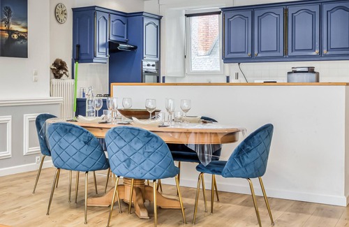 In the heart of the charming village of Carentan and ideally located to discover Normandy and the landing beaches, this spacious and stylishly furnished holiday apartment offers you a cosy retreat. In the bright and inviting living room, you can relax with a good book after a long day, and the kitchen invites you to conjure up culinary highlights for cosy meals with family or friends.