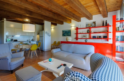 The house offers you an unforgettable vacation experience. If you prefer to live close to beautiful nature rather than directly on the coast, this accommodation is ideal for you. The house is cozy and exudes a warm, feel-good atmosphere with its heavy wooden ceilings. Relax here after your activities and cook your favorite dishes together. Enjoy the wonderful Italian weather by and in the large communal pool all day long and leave the worries of everyday life behind you.
