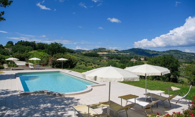 This semi-detached house is situated in a picturesque hilly location in the heart of the Marche region, just 12 km from the Adriatic coast.
