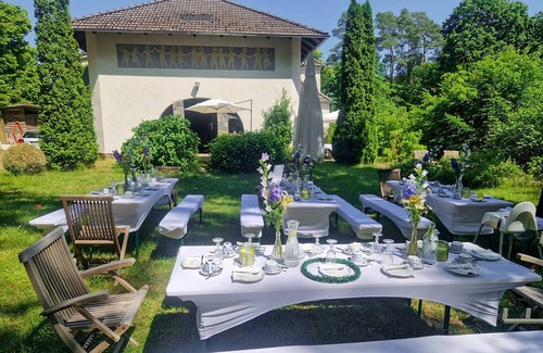 Best-rates for the Oberhavel house starts from $207 per night with includes Child Friendly, Internet, Laundry, Security/Safety, Barbecue/Outdoor Cooking, Kitchen, Parking, Balcony/Terrace, Sports/Activities, Fireplace/Heating, Entertainment with all other amenities. Perfect for Weddings is committed to ensuring every guest experiences a comfortable and extraordinary stay, whether planning a romantic getaway, a honeymoon, a pet-friendly stay, or celebrating with the entire wedding party.
