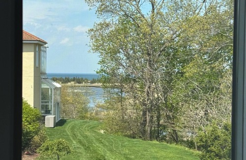 Bright, open guesthouse near Cohasset harbor with water views, this delightful space offers a peaceful retreat. Two bedrooms, one with king bed, second with two full size beds. Sleeps up to six. Full bathroom, laundry with washer/dryer, and full kitchen with island that opens onto a spacious living room. Large deck provides pleasant outdoor space to relax. Amenities include AC, high speed WiFi, large screen TV with premium channels, and a desk workspace. Guesthouse is 1250 sf on a single floor above stand alone four car garage. Plenty of parking.
