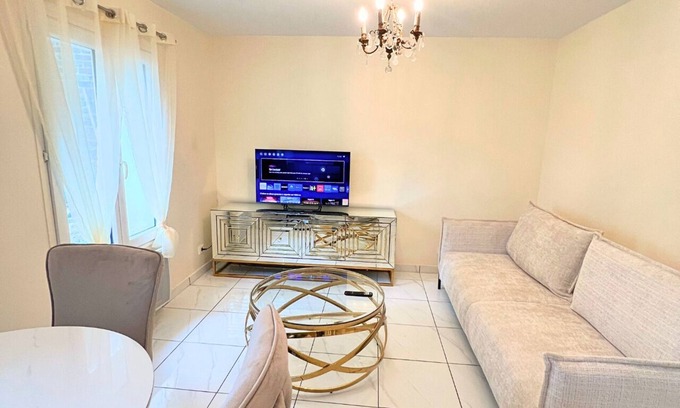 Welcome to your perfect retreat in Sarcelles! This spacious home features two cozy bedrooms and a comfortable living room with a sofa bed, accommodating up to six guests. The well-appointed bathroom ensures convenience, while the fully equipped kitchen invites you to enjoy home-cooked meals. Relax in the inviting living area or unwind in the charming outdoor space. I, the property owner, live in a separate home on the property with my two friendly dogs, so you'll have your privacy but feel reassured that help is nearby if needed. With a short 15-minute train ride to Paris and a 4-minute walk to the station, adventure & exploration await right at your doorstep!