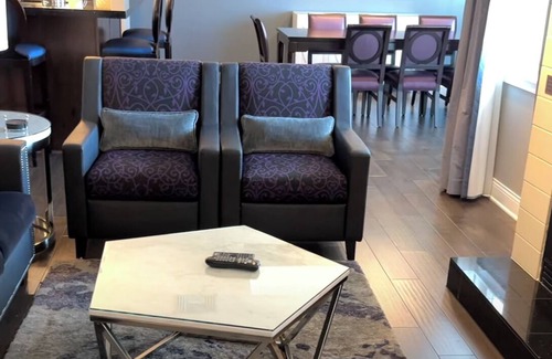 Stay comfortably in Anaheim at this 2-bedroom hotel suites. With a twin bed and a king bed, guests can relax in style. he living room with a sofa bed offers extra space to unwind. There is a full kitchen and laundry in suite. Enjoy WiFi, a fitness room, heating, arcade, pool, hot tubs and grills.