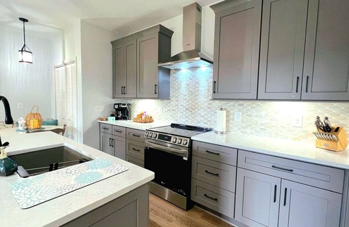 Be inspired in this spacious and serene guest suite. This dedicated apartment is located on the lower level of our home and boasts its own private entrance, patio with hot tub and stunning views in every season. Note: Since it is required to walk up and down some stairs to access the Guest Suite, this property would not be best for someone who has difficulty navigating stairs. Located between Ashland City & Pleasant View, where you will find convenient access to stores and restaurants. Only a 30 minute drive from all that Nashville has to offer including Broadway entertainment, concerts, Tennessee Titans football or Predators Hockey and so much more. After enjoying all this entertainment, escape the hustle and bustle of the city to our relaxing, peaceful hillside views from the hot tub. Enjoy cooking in the fully outfitted kitchen and hanging out with your family and friends in the living room with Wi-Fi and a 65 inch TV. Each bedroom also has a TV to watch as you relax in the comfy beds.
