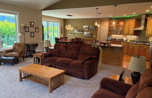Your perfect home base for the Salem Triathlon - Your Salem adventure begins at this brilliant 2-bedroom house. With 2 cozy twin beds and a 33" tv in room #1 and a luxurious queen bed in room #2, guests will feel right at home. The bathroom comes equipped with a hair dryer, towels and sundries for added convenience. This awesome property also features amenities like WiFi, AC, gas fireplace and gas heating. Well-appointed kitchen, formal dining room, living room with 75" tv, laundry room, private garage and a beautiful, private backyard with BBQ. Book now and enjoy everything this house has to offer.