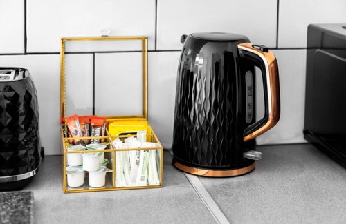 The kitchen comes equipped with all utensils and appliances for you to enjoy home-cooked meals.