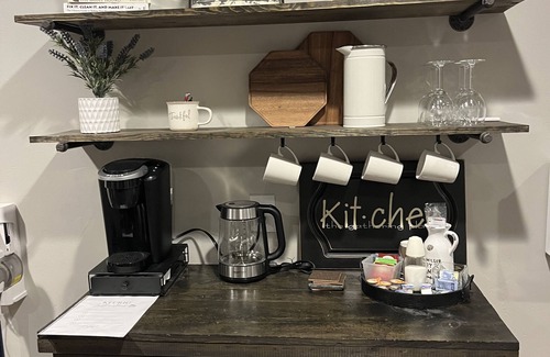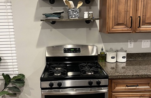 About the Suite: This commodious 2BR/1 BA suite is a private in-law basement unit, beautifully appointed, and thoughtfully designed for your comfort. Accommodating up to 6-8 people, the suite features 2 comfortable queen bedrooms a murphy bed, and a pull-out sofa bed The small kitchen is fully equipped for preparing hearty meals, and you'll have free WIFI, a large reclining sofa, and a 75’’ TV for entertainment. This space also includes a full-sized pool table. Plus, enjoy exclusive access to a hot tub in the backyard.