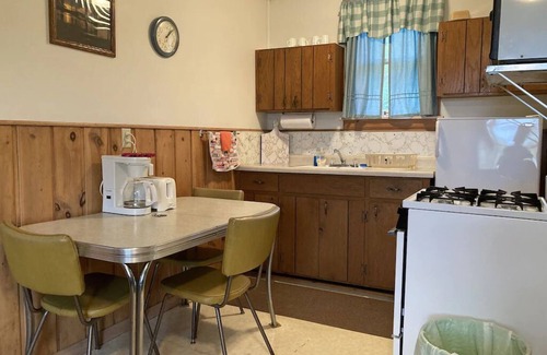 Enjoy our vintage style cottages with full kitchens, bathrooms are equipped with shower stalls, and cozy living rooms.