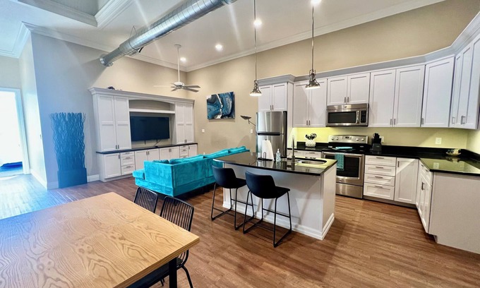 Beautiful 2 bedroom, 2 bathroom unit above historic Main Street Parkade in Cedar Falls. Stay and play in this great loft within walking distance of all the great local shops, restaurants, bars and breweries Cedar Falls has to offer.