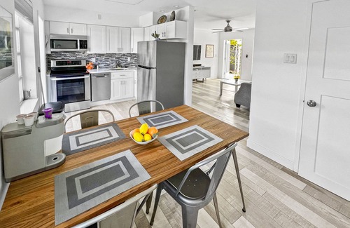 Recently renovated, fully furnished 2 bedroom, 1 bathroom private home near the beach in Pompano Beach. Walking distance to the Atlantic Ocean, Publix, local bars, and restaurants. Washer/dryer, full kitchen with new appliances, enclosed backyard, and more. This Key West-like, private getaway with totally fenced-in yard and private outdoor living space is less than a mile from the beach and walking distance to Pompano Beach Pier, as well as local restaurants. Includes parking for 2 cars.