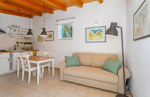 This romantic and beautiful property is located on the beautiful Mediterranean island of Cres, near Punta Kria. Surrounded by beautiful countryside, Mediterranean herbs and scents, there are two separate buildings on over 3000 m2 at your disposal. The larger one has a spacious living room with kitchen, dining area and bathroom on the ground floor. A steep staircase without railings leads to the open loft with three sleeping areas, from which you can access the bedroom with three single beds. Sloping roof on the upper floor at 150 cm. The main house also has 2 large, covered terraces. Next to it is a smaller cottage with a terrace and space for 2 people (living area with sofa bed, kitchen and bathroom). Guests also have access to a terrace with barbecue facilities. The pool offers welcome refreshment on hot summer days. Punta Kria is blessed with a rich variety of flora and fauna, here you can escape the stress of everyday life. The last 300 metres to the property are not asphalted.