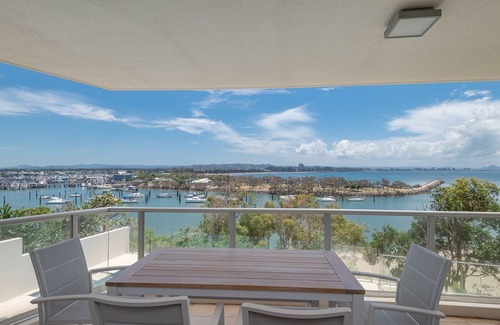 Perfectly positioned near the tip of Point Cartwright, this two bedroom apartment at Breakwater has spectacular panoramic water views. Practically surrounded by the Ocean, it allows for views South to Caloundra, over the Mooloolaba bay and marina as well as the hinterland and north to Noosa.