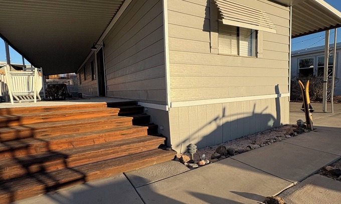 Experience Havasu Lake like a local in this marvelous 2-bedroom mobile home. The cozy space features 1 queen bed and 1 full bed, perfect for a small group of guests. With WiFi, heating, and AC available, you'll have everything you need for a comfortable stay. Our place is equipped for both long or short stays to make your holiday one to remember.