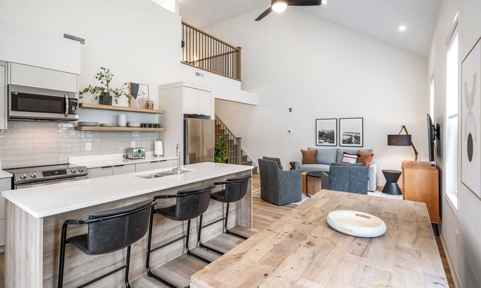 Our luxury space is new to VRBO and offers a private apartment above a wonderful new commercial space, with a great coffee shop, barber and retail below. Our building has 4 apartments that share only the main building entry way, hallway and elevator. One parking space is reserved for guests.
