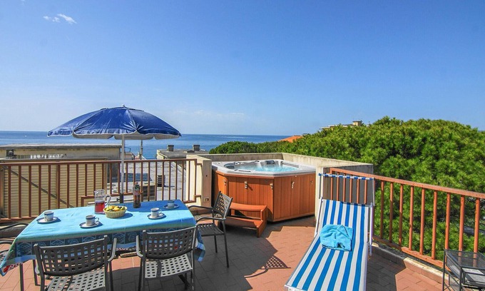 Enjoy the view of the sea on the roof terrace jacuzzi!