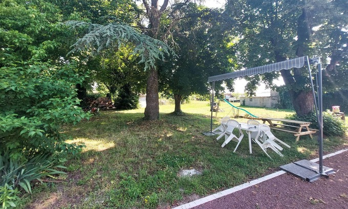 In an idyllic, rural setting, your cosy house welcomes you to a wonderful holiday in Allonnes. Start your day with breakfast in the enchanting garden while you breathe in the fresh country air and listen to the birdsong. The spacious green area offers numerous shady spots under the old trees where you can relax and unwind. Discover the charming pond on the property and take a short boat trip. Enjoy the peaceful atmosphere as you glide over the calm water. Afterwards, make yourself comfortable on the terrace and unwind with a glass of wine.