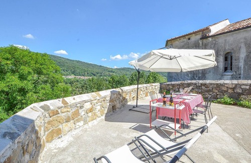 If you want to spend a stay in an ancient castle surrounded by nature, this accommodation, part of a semi-detached house about 10 km from Cividale del Friuli, is the place for you! In fact, the house is located in this castle built in 1200, immersed in the lush nature and forests of the Natisone valleys at an altitude of about 300 meters. This area is not far from the Slovenian border and is famous for its hiking and biking trails. At the entrance of the living room there is a large terrace, partly covered and partly open, overlooking the surrounding valleys and hills with a magnificent panorama. From the living room door, a few meters lead outside to the large kitchen with all appliances. Access to the accommodation and other areas is closed by a gate. Nearby are numerous bike paths for short and long trips. The first excursion must certainly be to the town of Cividale del Friuli; Udine is 25 km away and is famous for its raw ham San Daniele DOP.