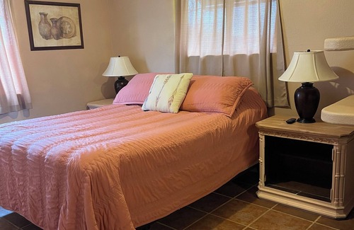 This Florence farmhouse boasts open living area, full kitchen and 2 inviting bedrooms with 1 queen bed and 1 full bed and a dedicated work space. Fully fenced one acre yard with a carport offers privacy with a view to the east to watch the open skies, starry nights and Arizona sunrise Escape to this private retreat for a relaxing getaway. We look forward to hosting you at our place.