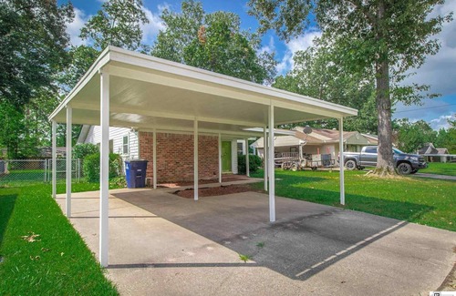Take a break and unwind at this peaceful oasis. Experience all Monroe has to offer from this peaceful 2 bedroom 1 bathroom home. The property will accommodate 7 comfortably with 2 queen beds, 1 queen pull out sofa, and 1 twin size rollaway bed (230 pound maximum). TV's Located in all bedrooms and the living room. The home is located not far from several fast food chains, airport, or shopping including the Pecanland Mall. Also, property is equipped with a fully functional kitchen if you like to cook!