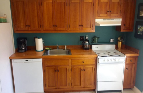 The open floor plan and lovely views make this efficient upstairs apartment seem much larger than it’s 650 square feet. The two private bedrooms include a king bed that can be made into twins in the first and a queen-size bed in the second. The large bathroom features an antique full-size claw foot bathtub (with shower) that gives out to a incredible view as you soak! Full laundry facilities available. Kayak and small boat access from from river bank. Bring your boat! Parking for two cars. There are 13 steep stairs to the apartment and the claw foot tub is tall. This apartment is NOT ACCESSIBLE.
