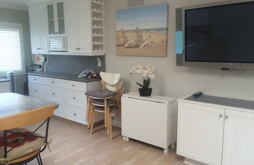 Located in the heart of historic Old Town, Seal Beach. Take your surfboard and head to the beach or walk to the pier, shops, and famous restaurants on Main Street. Totally private and completely remodeled 2 bedroom. This unit is the back unit of a triplex, up a full flight of stairs. Nicely furnished. Master Bedroom with Cal King bed and beautiful master bath. Second bedroom has brand new twin bedroom set. 3 flat screen TVs. Enter the detached upstairs unit through your spacious, private patio with overhead heating, lights, and gas BBQ. 4 skylights let in the soothing sound of the surf. WiFi, cable. 30 day minimum stay. Perfect for temporary, interim housing during remodel, escrow, extended family visits, family vacations!