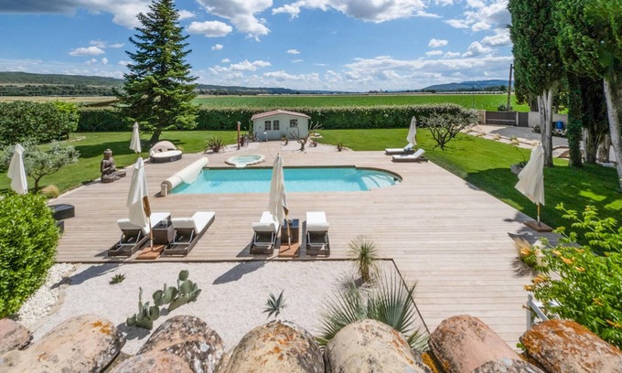 Explore the extensive garden and lie down on the sun loungers by the beautiful pool, where you can chat with guests from the neighboring house.