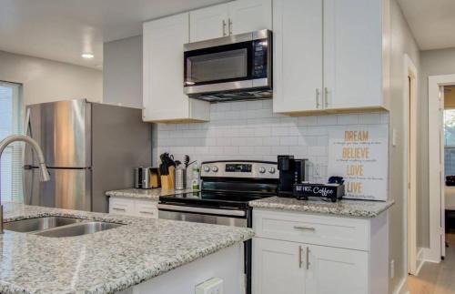 A recently renovated vacation home, 2-Bedroom Townhouse in Houston offers accommodations in Houston. This property offers access to a balcony, free private parking, and free Wifi. Outdoor seating is also available at the vacation home. The air-conditioned vacation home consists of 1 bedroom, a living room, a fully equipped kitchen with a dishwasher and a coffee machine, and 2 bathrooms with a hot tub and a hair dryer. Towels and bed linen are offered in the vacation home. There's also a seating area and a fireplace. BBVA Stadium - Houston Dynamo is 4.7 miles from 2-Bedroom Townhouse in Houston, while Minute Maid Park is 5 miles from the property. William P. Hobby Airport is 5.6 miles away.