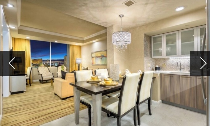 Relax and enjoy our newest and most spacious room type as you begin your Las Vegas vacation or business stay. The elegant 2-Bedroom Villa offers 1,300 square feet of comfort, featuring stylish gold and black décor, modern amenities, and accommodations for up to six guests.