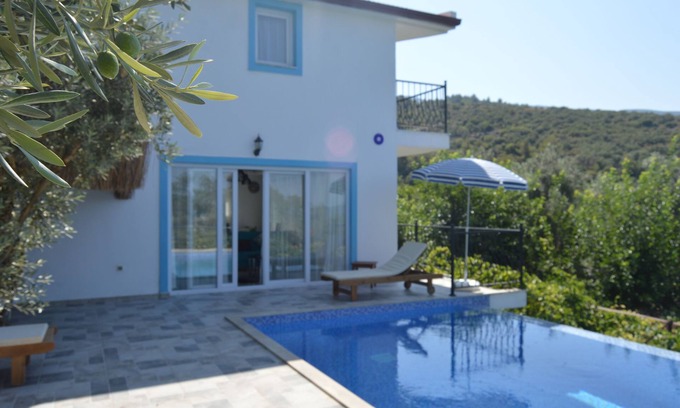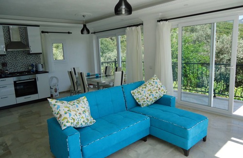 The villa is in a tranquil and peaceful setting in lovely Üzümlü, surrounded by grapevine, olive, fig, orange and pomegranate trees. There are wonderful views of the Taurus mountains and views across rolling olive groves to Patara beach, yet is still just a 10 minute drive from lively Kalkan and its many shops and restaurants.