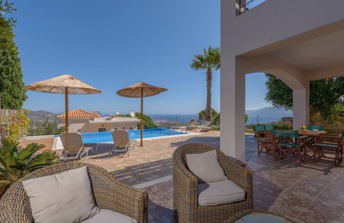 The Villa is a modern property with private pool enjoying a superb location above the famous resort of Agios Nikolaos.