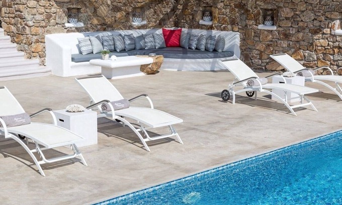 Best-rates for the Panormos villa starts from $645 per night with includes Guest Services, Breakfast, Child Friendly, Kitchen, Ocean View, Balcony/Terrace, Bedding/Linens, Air Conditioner, TV, View, Internet, Parking, Pool, Designated Smoking Area, Pet Friendly, Wellness Facilities, Fireplace/Heating with all other amenities. Perfect for Weddings is committed to ensuring every guest experiences a comfortable and extraordinary stay, whether planning a romantic getaway, a honeymoon, a pet-friendly stay, or celebrating with the entire wedding party.