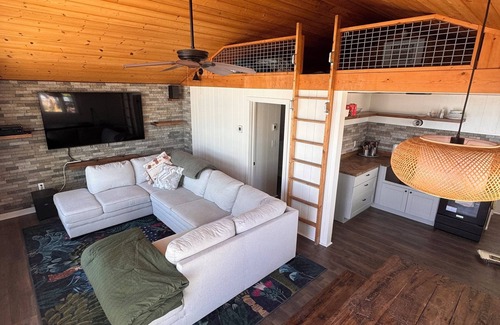 Your cozy getaway awaits in Eastport at this brilliant house. With 2 full beds in 2 bedrooms and a loft with a futon and ample room for sleeping bags (up to 6 people can fit comfortably), this tranquil retreat is perfect for small groups or families. Stay comfortable with heating and AC during your stay. Firepit for bonfires, dock for swimming, perfect spot on the lake! Enjoy your time in Eastport at our lovely house. Boat and docking for watercraft, not included in rental. There are several rental opportunities on the lake :)