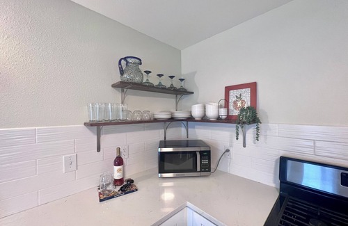 Enjoy relaxation and convenience right in the heart of Weatherford! The Weatherford Peach is located just a couple of blocks from the square, Weatherford College, Chandor Gardens, AND Heritage Park- not to mention virtually every restaurant and coffee shop in town. TWP offers luxury organic cotton linens, memory foam mattresses, and modern design that doesn't take itself too seriously. The private courtyard makes for the perfect place to dine or relax at the end of the day.