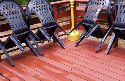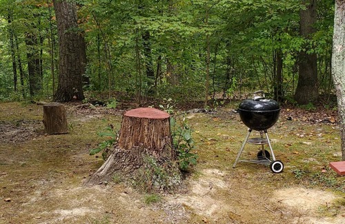 Enter the large sunroom with many windows to find a light and airy sitting area and casual dining spot. Also on this same level is a bright and cheerful bedroom with beautiful views of the four-acre forested setting. Step up to the next level and make yourself at home in the family room with beautiful views. An interesting three-sided fireplace with gas logs separates the living room from the eat-in kitchen. Watching your favorite show on the 50" LED TV, equipped with local channels and netflix, and DVD, or reading the latest issue of the local newspaper, "The Brown County Democrat" is a relaxing way to spend a lazy morning. Cooking in the fully equipped kitchen or outdoors on the charcoal grill will take care of one's hunger pains but remember how we said you're only 5 minutes from town? Here's a phrase we've found to work well when the spirit's willing but the flesh is weak: "Honey, please. Take the keys. Get pepperoni & extra cheese!"